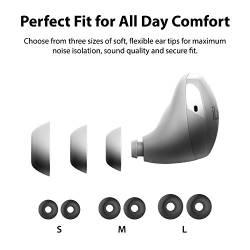 TRUE WIRELESS AND ULTRA-LIGHT: Compact and ultra-lightweight, these cordless TWS bluetooth earbuds are perfect for workouts, runs, sports and gaming. The in-ear earphones are ergonomically designed to fit snug into each ear. The earbuds also include 3 sizes (large, medium, small) of soft, flexible ear tips to ensure a comfortable and secure fit. Say goodbye to wired earphone tangles and say hello to the freedom of movement!